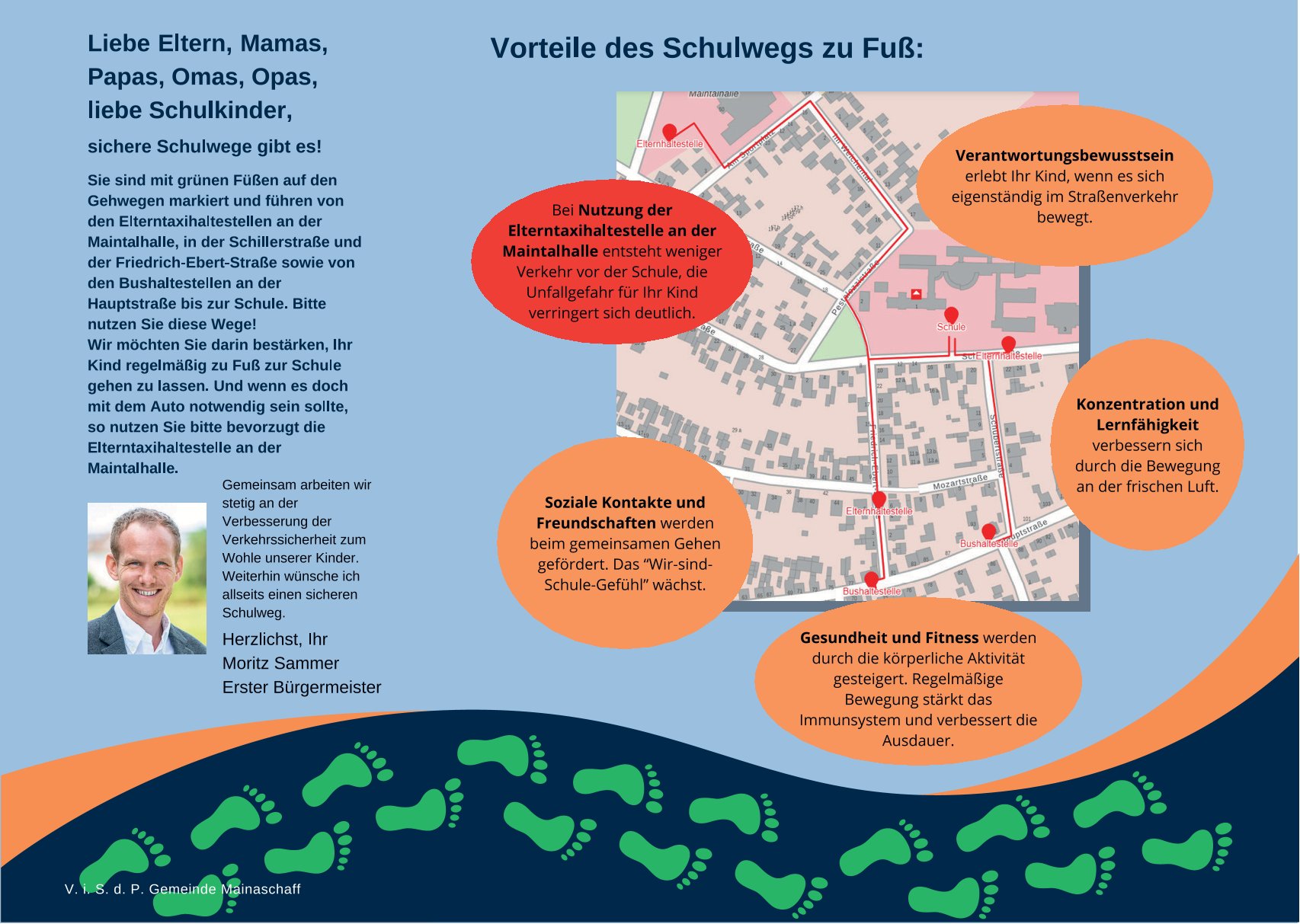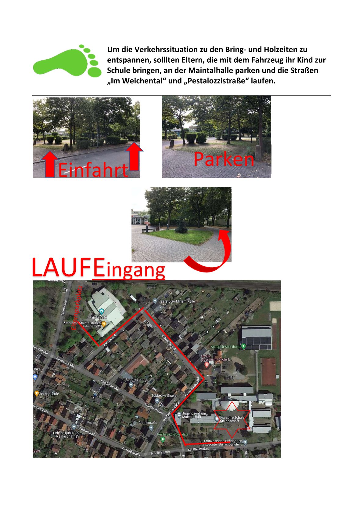 Alle Verkehrsteilnehmer sollten dazu beitragen, dass unsere Kinder sicher zur Schule und von der Schule nach Hause kommen. Aus dieser Verantwortung heraus hoffen wir auf Ihre Unterstützung, indem Sie nicht bis an die Schule oder die nahen Wohnstraßen mit dem Auto fahren, wenn Sie ein Schulkind auf dem Schulweg begleiten. Die Straßen- und Parkräume vor unserer Schule kommen durch die steigende Anzahl an PKWs in den Hol- und Bringzeiten vor dem Schulgelände sichtlich an ihre Grenzen. Fahren Sie bitte deshalb künftig an die Maintalhalle und lassen Sie dort ihr Kind die restliche Strecke zur Schule laufen oder parken Sie bitte dort und gehen noch einige Schritte mit Ihrem Kind mit. Die Fußwege auf beiden Seiten der Maintalhalle sind geöffnet und Sie können über den Parkplatz und den Fußweg direkt zur Straße „Am Sportplatz“ und weiter zur Schule laufen (siehe Plan auf der Rückseite).